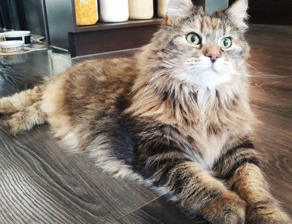 Amber suggested we take a look around the shelter and see if there were any other cats that caught my eye. Next to us was a big glass window into one of the communal cat rooms. Inside, I caught a glimpse of the room’s only occupant: an enormous ball of fur, tucked into the corner.