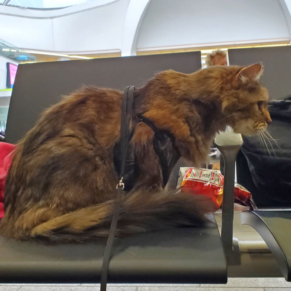 Pam’s cat tree eventually broke, immediately transforming into a trebuchet that launched her across the apartment. She was fine, if a little surprised. Before I had a chance to buy a replacement, I was offered a job overseas in the UK.