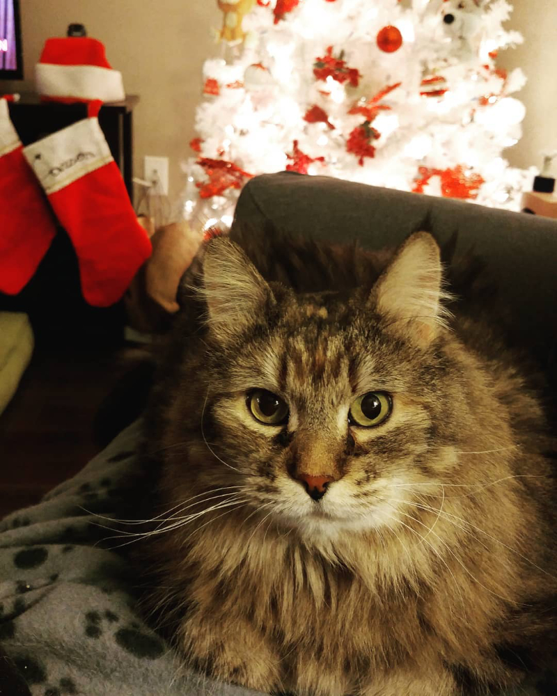Despite this incident, Pam was invited to my parents’ new house for Christmas that year — and every year afterwards. My dad was especially fond of her, although unfortunately the feeling wasn’t mutual; she drew blood on him multiple times. One summer, while I was visiting family in Ontario, she spent a few weeks at their house terrorizing the dogs and lounging on the patio.